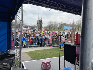 Auf dem Programm stand ein buntes Unterhaltungsprogramm: Radio Arabella Moderator Simon Jägersberger unterhielt das Publikum auf der Bühne am Olympiasee mit Interviews, Spielen und lustigen Wettbewerben, am Bastelstand, beim Kinderschminken, am Glücksrad und beim AOK-Tresorspiel. An den Fahrgeschäften und Ständen der Münchner Schausteller herrschte die ganze Zeit über höchster Betrieb. Ach ja, und natürlich verteilten die besten Osterhasen der Stadt süße Leckereien an die kleinen Osterfest-Fans.